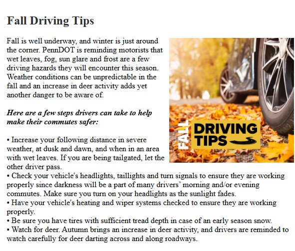 The 2025 Fall Township Newsletter is now available! For Fall Cleanup Information, please visit our Newsletters tab!